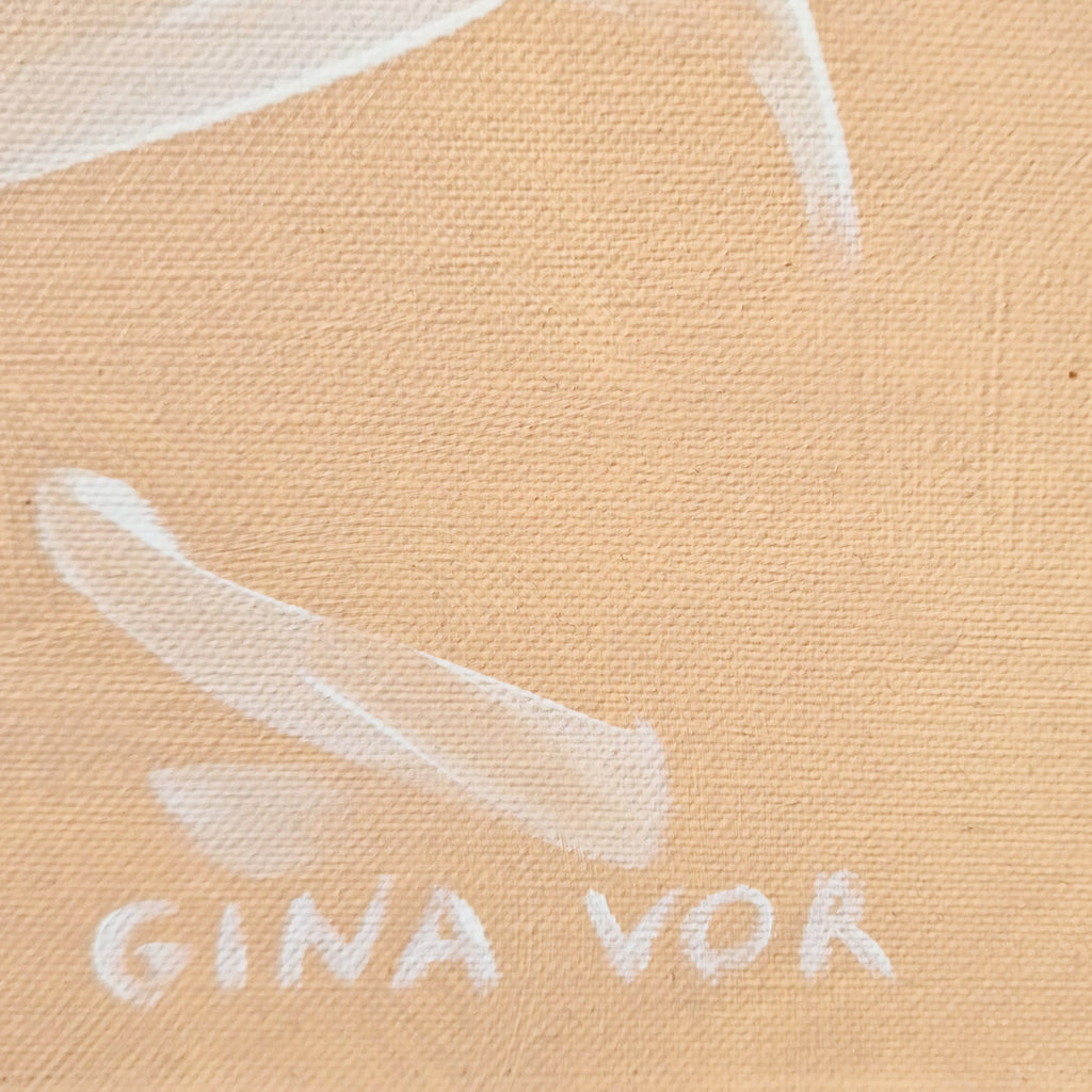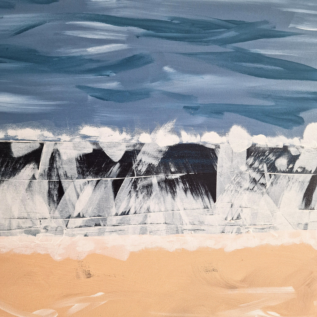 This semi-abstract landscape by artist Gina Vor, captures the essence of a beach scene with striking simplicity and modern expressiveness.