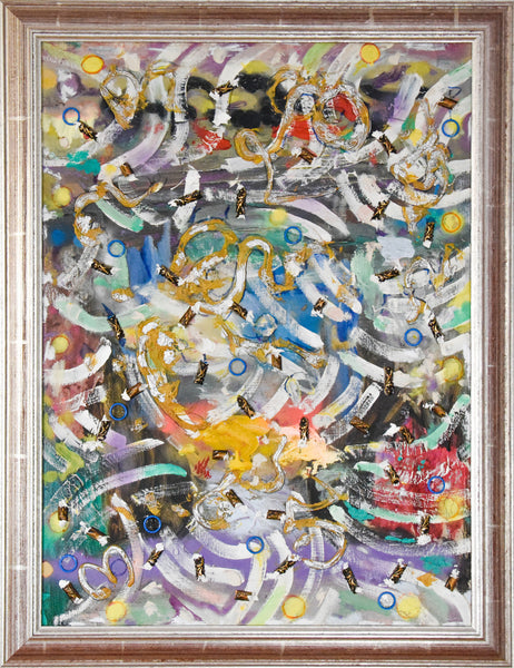Grande peinture abstraite sur toile, œuvre d'art originale, encadrée et prête à accrocher.